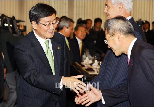 전광우 금융위원회 위원장이 25일 정오 서울 명동 은행회관에서 열린 은행장 상견례에 참석하기 위해 유지창 은행연합회장과 함께 중회의실로 들어서고 있다. 이날 전 위원장과의 상견례 자리에는 유지창 은행연합회장 외 총 20명의 은행장과 금융기관 대표들이 참석했다. 독자들의 PICK! '데드풀' 번역가 3차례 성범죄…"배에 올라타 얼굴 가격" '엄마 외도' 목격한 12살 딸 충격...폭행당해도 "이혼하지 마" 빌어 홍서범 전 며느리 "아들 외도, 대중에 사과? 저에게 하시라" 분노 30세 연하 남편과 나란히..."6번째 결혼" 55세 여성 누구길래