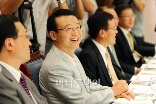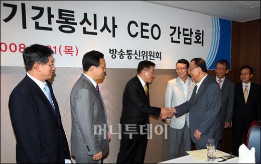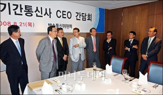 21일 오후 서울 태평로 한국프레스센터에서 주요 기간통신사 CEO 간담회가 최시중 방송통신위원회 위원장을 비롯한 8개 기간통신사 CEO들의 참여 속에 열렸다.