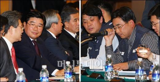 은행연합회와 전국금융산업노동조합(금융노조)가 10일 오후 명동 은행회관에서 열린 34개 금융기관 노사 전체대표자 회의에서 2008년도 임금 및 단체협약을 27차례 협상끝에 타결했다. 사진은 신동규 신임 은행연합회장(왼쪽)과 양병민 금융노조 위원장이 체결안에 대해 고민하는 모습. 독자들의 PICK! "대기업 더 비싸" 이경실, 달걀 논란 해명…"'군인' 아들, 국방부 조사" '와인 바꿔치기' 논란 후…안성재, 고급 샴페인 행사서 포착 음란물까지 뿌렸다...고교 농구코치, 제자와 부적절한 관계 허니문 베이비 '출생의 비밀'...결혼 직전 전남친 만난 아내