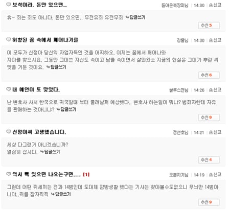 ☞ 아무리 죄를 지었어도 돈만 있으면 쉽사리 풀려날수있으니 사람들이 돈돈 하는거 아닐까요. 그렇기 때문에 범죄인줄 알아도 큰 이익때문에 많은 기업들이 교묘하게 법을 이용해서 범죄아닌 범죄를 저지르고 있는것이구요(tlsvpd, 네이버)