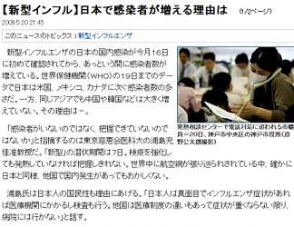 산케이신문은 이밖에 일본 국립감염증연구소 감염증정보센터 관계자의 말을 인용해 "일본의 독감 감시 시스템이 잘 돼 있어 신종 플루 감염자들이 많이 발견돼 그 숫자가 증가한 것이다"고 보도했다.