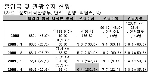 이에 대해 문화부는 "신종 인플루엔자 확산 방지 대책 마련 및 '한국 방문의 해' 사전 프로모션사업 추진 등 원화가치 회복이후 외래관광객 방한 추세가 위축되지 않도록 할 것"이라고 강조했다.