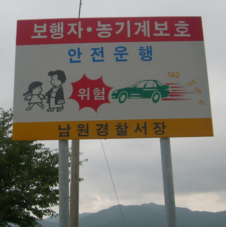 최근 전북 남원에서 촬영된 안전운행 장려 표지판은 '보행자·농기계 보호', '안전운행'이란 문구와 함께 손잡고 걸어가는 모녀를 향해 달려가는 자동차의 모습이 형상화 돼있다. 이 가운데 어머니의 복장이 일본 여성의 전통복장인 기모노를 연상케 한다는 지적이다. 캐릭터가 신고 있는 신발도 왜나막신을 형상화한 것으로 보인다.
