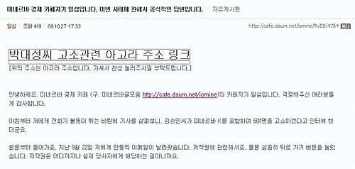 박대성씨가 저작권위반혐의로 고소한 카페 운영자 주장