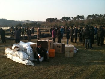 29일 오전 천안함 실종자 가족이 머물고 있는 해군 2함대 사령부 내 체육관 옆에 전원시설을 갖춘 50여개의 검은색 군용 텐트가 설치됐다. 실종자 가족 60여명은 이날 오후 5시쯤 사령관 항의방문을 위해 사령실로 향하던 중 뒤늦게 텐트를 발견, 해군에 거세게 항의했다.