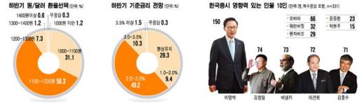 벤 버냉키 미국 연방준비제도이사회 의장(73명)과 이건희 삼성전자 회장(72명), 김중수 한국은행 총재(71명)가 근소한 차이로 3~5위에 올랐고, 버락 오바마 미국 대통령(66명)과 '투자의 귀재' 워런 버핏 버크셔해서웨이 회장(32명), 원자바오 중국 총리(29명)가 뒤를 이었다.