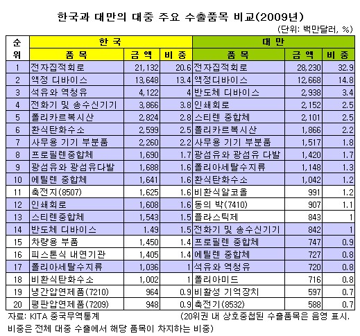 이 과장은 "한국 제품은 대만산과 비교할 때 '하이엔드 제품'이라는 차별성이 존재함은 분명하다"며 "그러나 궁극적으로 한쪽의 관세 장벽이 없어진 만큼, 우리도 중국과의 FTA를 진전시켜야 한다"고 말했다.