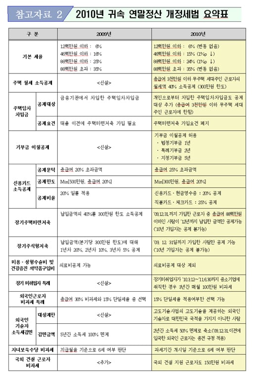[표]2010년 연말정산 개정세법 요약표