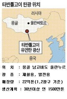 타반톨고이 광산은 제철 공정의 필수 요소인 점결탄을 비롯해 64억톤의 광물이 매장돼 있는 것으로 추정되는 전세계 미개척 3대 광산 중의 하나다.