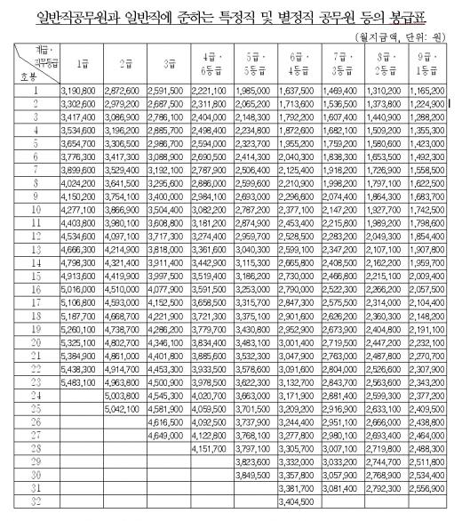 2012년 공무원 봉급표가 화제다.