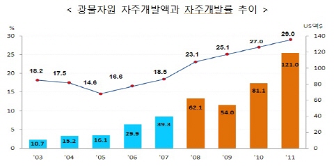 에너지 자주개발률을 끌어올리기 위해 지난 2008년부터 추진해 온 '석유공사 대형화'가 일단락된 만큼 이제는 주요 광물자원의 안정적 확보에 초점을 맞추겠다는 구상이다. 이를 위해 최근 '자원개발 강국을 향한 마스터플랜'이라는 제목으로 연구용역을 발주한 상태다.