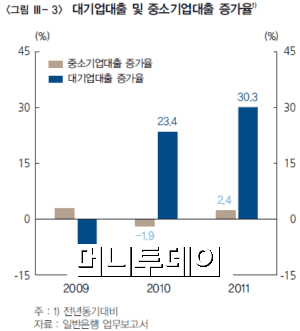 이를 통해 은행권의 중소기업 대출을 늘리고 대출 금리도 낮추겠다는 게 정부 의도다. 최근 한국은행은 '금융안정보고서'를 통해 지난해 은행권의 대기업 대출은 전년보다 30.3% 증가했지만 중소기업 대출은 2.4% 증가한데 그쳤고 대기업과 중소기업 대출간 금리격차도 확대되고 있다고 지적한 바 있다.