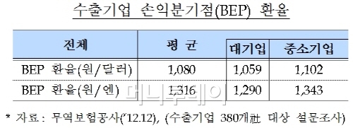 기획재정부 한 관계자는 "지난해 1월 삼성경제연구소 발표에 따르면 환율이 1%p 하락할 경우 대기업은 영업이익률이 0.094%p 감소하는 반면 중소기업은 0.139%p 감소하는 것으로 나타났다"고 말했다.