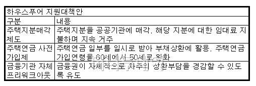 재정부 관계자는 "서민 주거 안정과 가계부채 부담 완화를 위해 하우스푸어 지원방안을 시행할 것"이라며 "구체적인 방안을 마련해 4월 중 발표하겠다"고 말했다.