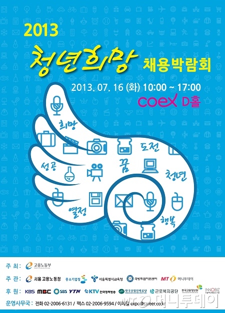 16일 오전 10시부터 시작된 이번 '2013 청년희망 채용박람회'는 고용노동부가 주최하고 머니투데이와 서울고용노동청 등이 주관한다.
