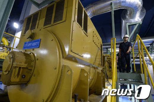 #14일 오후 3시 서울 강남구 삼성동 코엑스 지하 4층. 이곳에선 가스 발전기 2대가 굉음을 내며 돌아가고 있었다. 코엑스 측에서 비상시를 대비해 설치한 자가 발전기다. 이날 발전기 가동으로 코엑스가 자체 수급한 전력은 3800kW. 코엑스를 운영하는데 필요한 전력 중 17.4%에 해당한다.