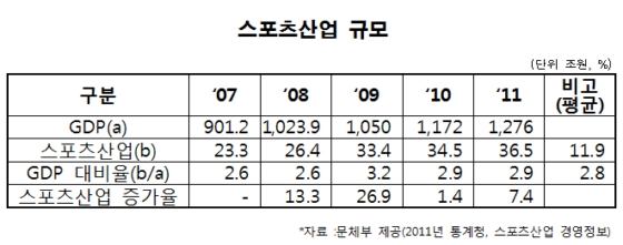 12일 문화체육관광부에 따르면 다음 달 중으로 체육국 내에 우리나라 스포츠산업의 육성·진흥 정책을 담당할 '스포츠산업과'(가칭)가 만들어진다. 김종 문화체육관광부 2차관은 "다음달 11일 국무회의를 거쳐 정부조직법 시행령이 개정되면 스포츠산업과가 생긴다"고 말했다.