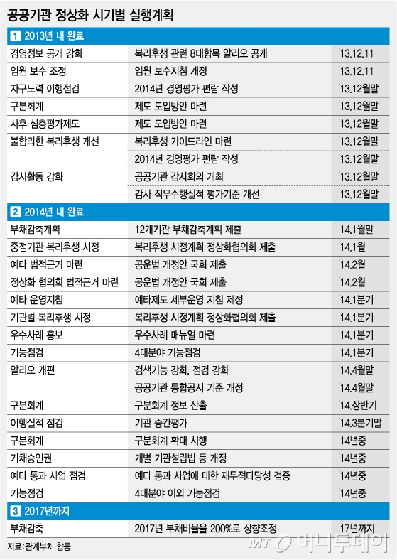 15일 기획재정부와 관계부처에 따르면 정부는 최근 발표된 공공기관 정상화대책 후속 조치로 공공기관 단체협약을 점검키로 하고 실무 작업을 준비중이다.