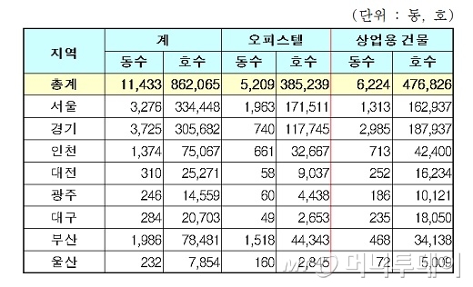 아울러 한 동 전체의 호와 동을 모두 합친 세대의 값이 가장 비싼 오피스텔은 경기 성남시 분당구 정자동의 분당두산위브파빌리온으로 4001억 원이었으며, 상가 중에서는 서울 구로구 구로동의 신도림테크노마트로 5675억 원을 기록했다.