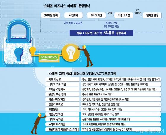 스웨덴의 국가기관인 스웨덴혁신청(VINNOVA)이 주최하는 이 오디션은 '스웨덴 비즈니스 아이돌'(Swedish business idol)이라 불린다. 이처럼 오디션 방식과 같은 국가 주도의 연구개발(R&D) 투자 정책을 살펴보면 왜 스웨덴이 유럽 최고의 혁신 국가로 인정받고 있는 지 알 수 있다. 스웨덴은 최근 유럽연합(EU)의 경제혁신지수 평가에서 1위를 차지한 바 있다.