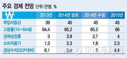최경환 경제부총리 겸 기획재정부장관은 “정책기조를 대전환해 과감하게 정책 대응을 할 것”이라며 “확실한 효과가 나타날 때까지 확장적으로 운용할 것”이라고 말했다.