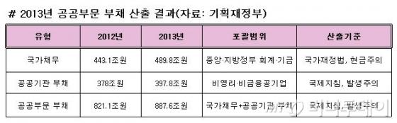 기재부, '2013년 공공부문 부채 산출 결과' 다음달 발표...1년새 66.5조 늘어