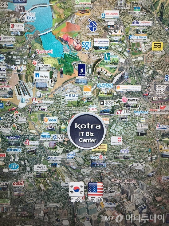 KOTRA 실리콘밸리 무역관 입구에 있는 키오스크(Kiosk, 무인 종합정보안내 터치스크린)는 ‘글로벌 인재와 혁신의 요람’을 한눈에 보여 줬다. 구글, 애플, 삼성전자, IBM 등 실리콘밸리에 자리 잡은 수백개 기업의 위치를 로고로 촘촘하게 표시한 것. 이들 기업이 전 세계 인재를 마치 블랙홀처럼 빨아 들이고 있다. 전통적인 인터넷 소프트웨어 기술은 물론 빅데이터, 인공지능(AI), 3D 프린터 등 미래가치가 높은 분야를 망라한다.