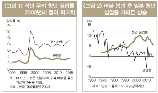 이런 흐름은 1990년대 버블 붕괴 후 양적, 질적으로 청년고용이 악화된 일본과 비슷한 모습이다.