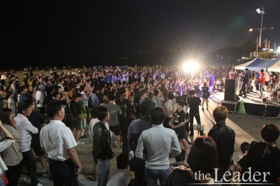 16일 해운대해수욕장 행사장에는 우천주의보에도 불구하고 페스티벌 관람을 위해 17000여 명의 관객들이 모여 축제에 함께 참여하며 하나가 됐다.