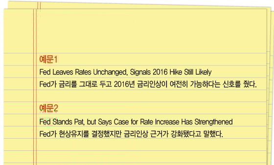 블룸버그는 Fed의 금리동결 결정을 전한 기사의 제목을 예문1처럼 달았다. '동결하다' 대신 '그대로 두다'(leave ~ unchanged)라는 표현을 썼다.leave대신keep을 써도 된다. 외신들은 금리동결에keep rates on hold라는 표현도 자주 쓴다.