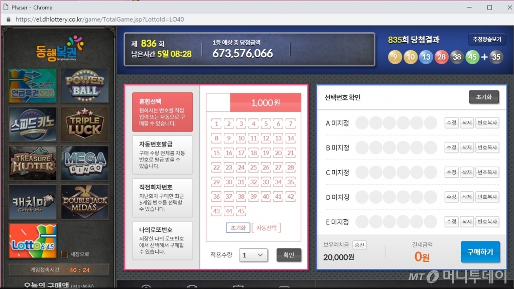 가장 큰 변화는 인터넷 판매다. 2일부터 동행복권 홈페이지(dhlottery.co.kr)에 접속해 회원 가입하면 편의점 등 오프라인 판매점에 가지 않아도 인터넷으로 복권을 살 수 있다. 예치금을 최소 2만원 이상 넣은 뒤 복권을 구매하는 식이다.