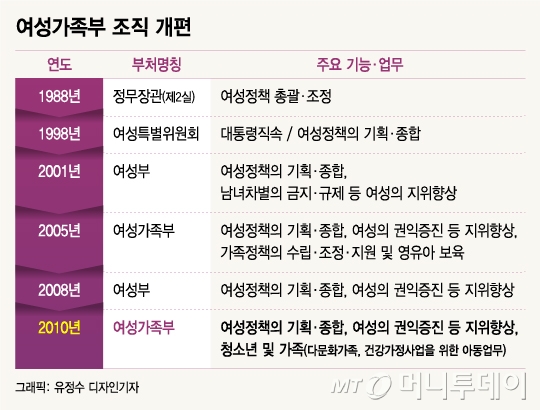 [여가부, 어쩌다 동네북]④2000년대 들어 부처 명칭만 4번 바뀌며 부침 겪어