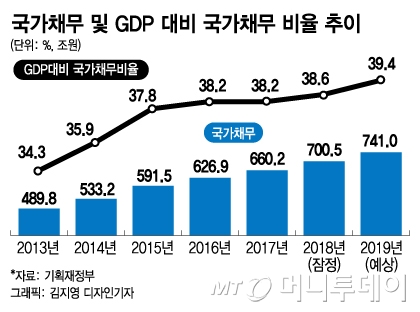 정부는 올해 국가부채를 740조8000억원, GDP 대비 국가채무 비율 39.4%를 예상하고 있다. 만약 올해 추경을 위해 8조원을 추가 발행한다고 해도 국가채무비율은 39.8%에 그친다. 17조7000억원을 전량 발행해도 40.3%다. 이는 OECD(경제협력개발기구) 평균 80.9%(2017년 OECD Average)의 절반에 불과하다.
