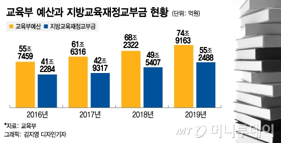 지방교육재정교부금 규모는 2015년 39조4056억원에서 2016년 41조2284억원, 2017년 42조9317억원, 2018년 49조5407억원 등으로 증가했다. 그러나 과거 2009년과 2014년, 2015년에는 전년 대비 규모가 줄기도 했다. 교육부는 올해 교부금총액이 55조2488억원으로 전년대비 5조7801억원 증가했지만 앞으로 교부금 증가폭은 줄어들 것으로 전망했다.