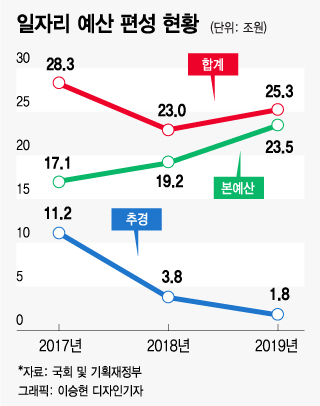 올해 일자리 예산은 170개 사업 총 23조원이다. 여기에 아직 국회를 통과하지 못한 추경안에도 청년 추가고용장려금, 고용·산업위기지역 공공일자리 지원 등 1조8000억원 규모의 일자리 예산이 담겨 있다.
