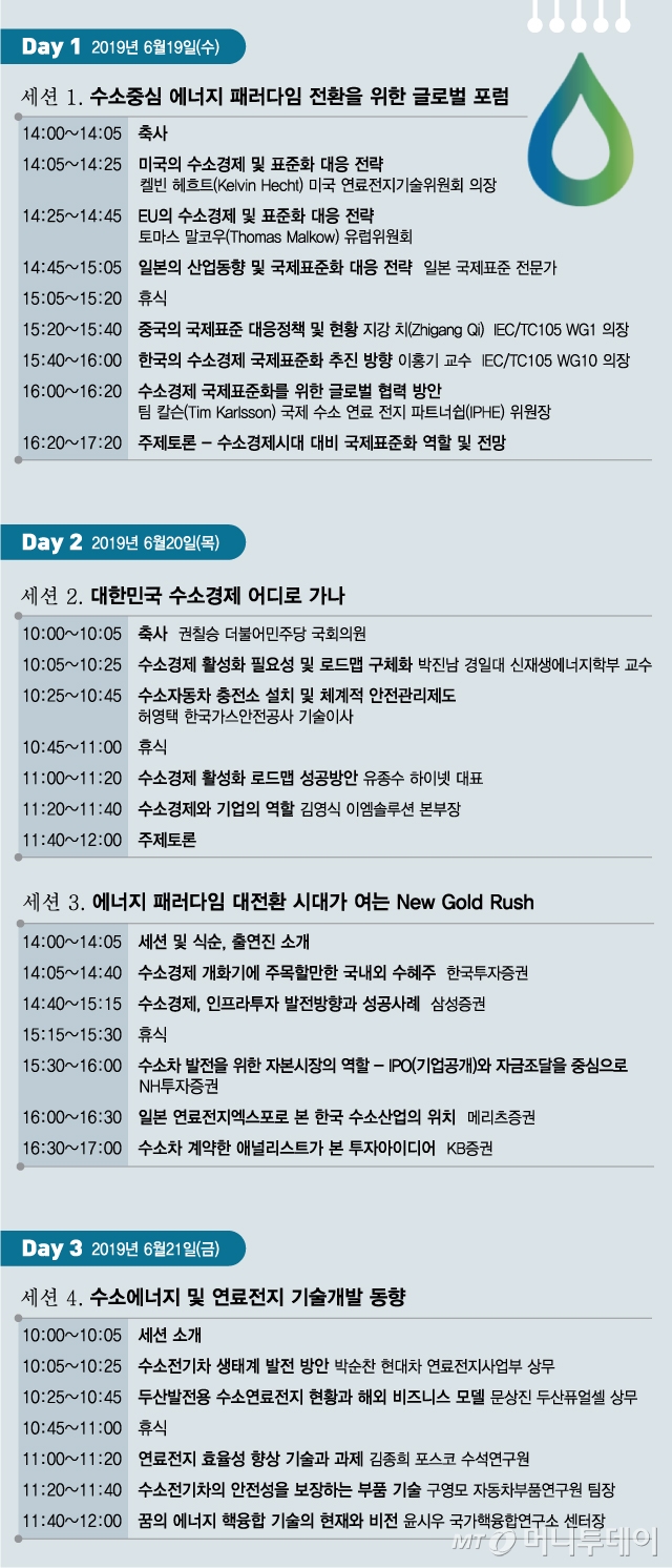 19일부터 사흘간 서울 동대문 디자인플라자(DDP)에서 국회수소경제포럼 주최, 국가기술표준원과 머니투데이 주관으로 열리는 ‘2019 대한민국 수소엑스포’(www.khexpo.co.kr)’ 컨퍼런스 1세션으로 열리는 ‘수소경제국제표준포럼’은 이런 점에서 중요한 의미를 갖는다. 글로벌 수소기술 국제표준화 전문가들이 대거 참여해 수소기술 국제표준화 흐름을 가늠한다.