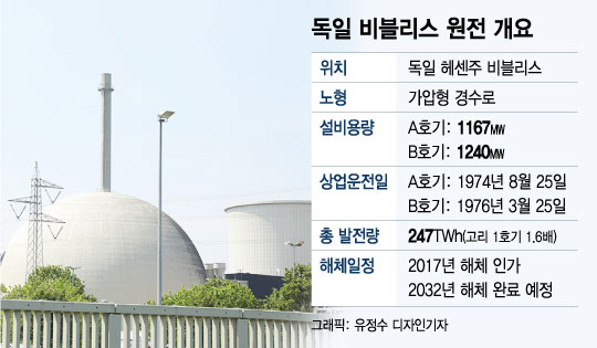독일 정부는 후쿠시마 원전 사고 직후 비블리스 원전을 포함해 원전 8기의 가동을 중단했다. A호기를 2019년, B호기를 2021년까지 계속운전하기로 결정한 지 불과 2개월 만이다. 가동이 중단됐던 비블리스 원전은 해체 결정이 내려졌고 2017년 3월 규제당국 인가를 받아 해체 작업이 진행 중이다.