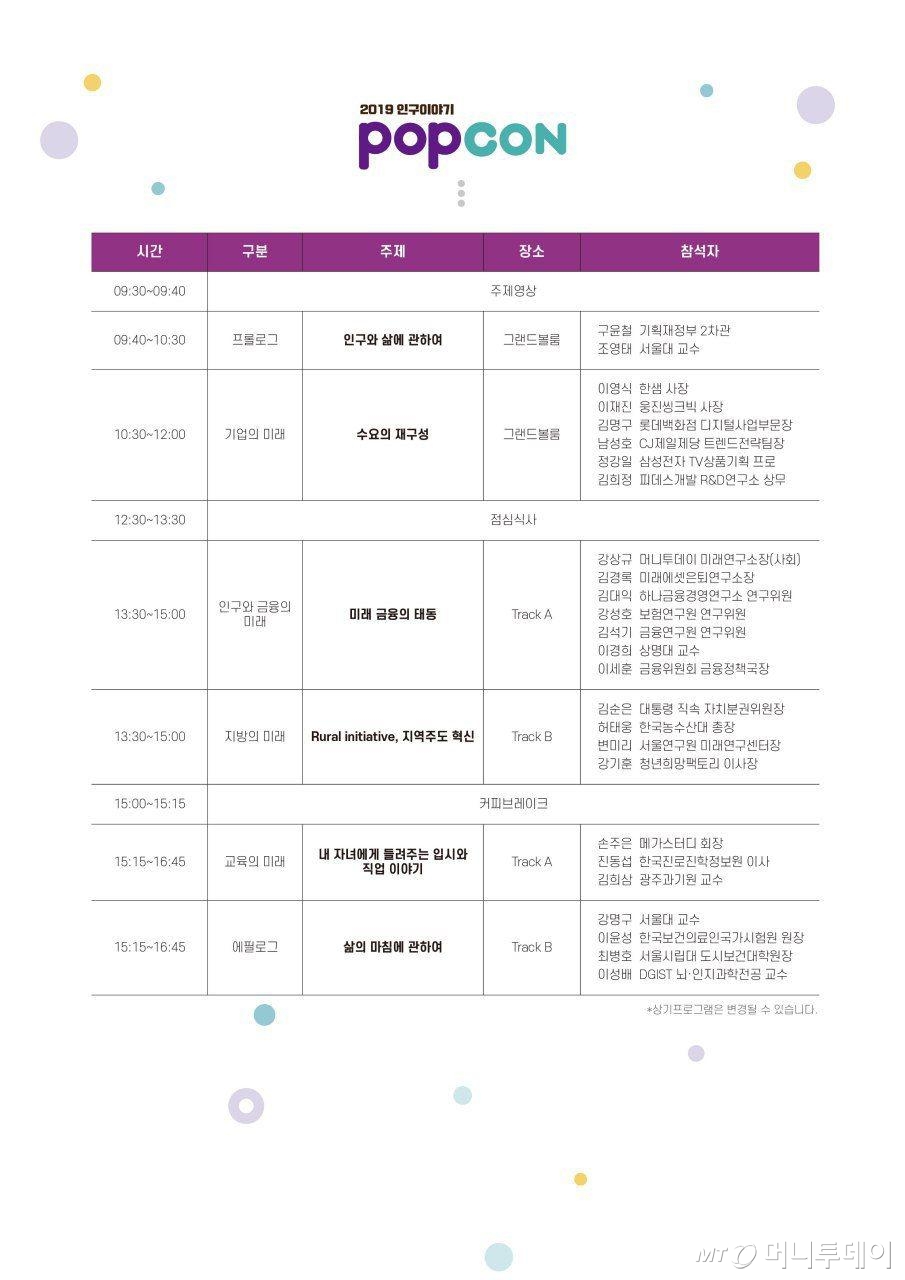 '2019 인구이야기 POPCON'에 그 고민을 담았습니다. '인구 구조와 한국 사회의 변화, 그리고 기회'를 주제로 기업, 금융, 교육, 의료, 지방행정 등 각 분야 최고 전문가들이 모입니다.