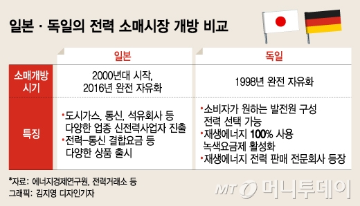 독일의 경우 1998년 전력 자유화를 단행했다. 발전과 판매 모든 부문에서 100% 시장개방을 추진했다. 현재는 E.ON, RWE, Vattenfall, EnBW 등 4대 전력회사를 비롯해 다양한 형태의 1000여개 회사가 경쟁한다. 소비자들은 자유롭게 전력판매사와 요금제를 골라 쓴다. 전력회사들이 앞다퉈 다양한 옵션을 내놓은 것은 물론이다.