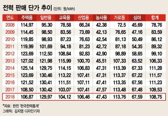10일 산업통상자원부와한국전력(47,350원 ▲2,550 +5.69%)에 따르면 우리나라 전기요금은 용도별 요금제를 기본으로 한다. 일반가정과 공장, 상가 등 전력수요자 성격에 맞춰 △주택용 △산업용 △일반용 △농업용 △교육용 등으로 구분된다. 용도별 정해진 기본요금과 사용한 전기량에 부과되는 전력량요금을 합쳐 요금이 부과된다.