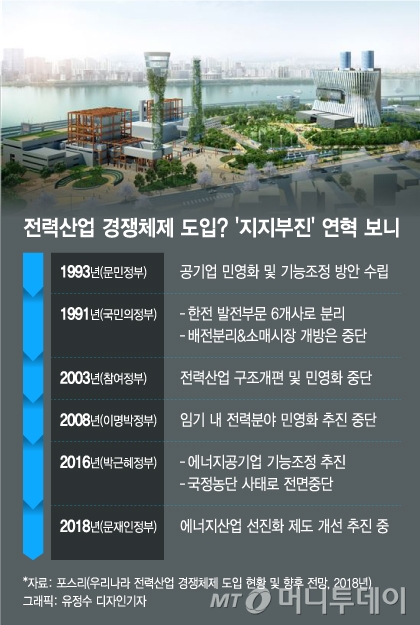[15년 제자리걸음, 전력산업 구조 개편]발전 부문 2001년 경쟁구도 구축…판매 부문 경쟁 도입, 2004년 논의 중단 이후 모든 정권서 실패