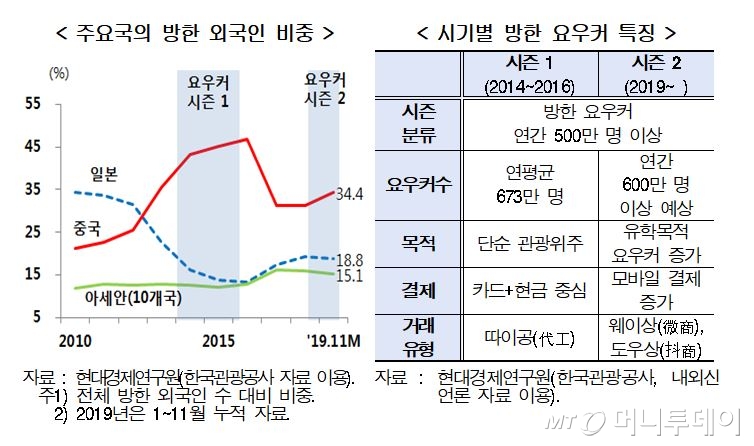 한재진 현대연 연구위원은 "향후 한중간 경제관계가 개선될 가능성에 대비해 방한 요우커 유형별 공략을 통해 국내 관광산업의 중장기적 발전플랜 모색이 필요하다"고 말했다.