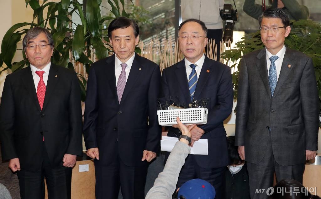 홍 부총리는 이날 서울 명동 은행회관에서 거시경제금융회의를 마친 후 기자들과 만나 이같이 밝혔다. 회의에는 홍 부총리와 이주열 한국은행 총재, 은성수 금융위원장, 윤석헌 금감원장 등이 참석했다. 부총리와 한은 총재, 금융위원장, 금감원장이 한 자리에 모인 것은 지난해 8월7일 미국 재무부가 중국을 환율조작국으로 지정한 이후 처음이다.