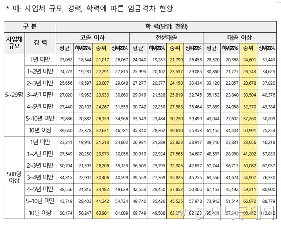 임금 정보는 평균연봉, 중위연봉(모든 노동자를 일렬로 세웠을 때 정가운데 있는 연봉), 하위 25% 및 상위 25% 연봉으로 구성됐다.