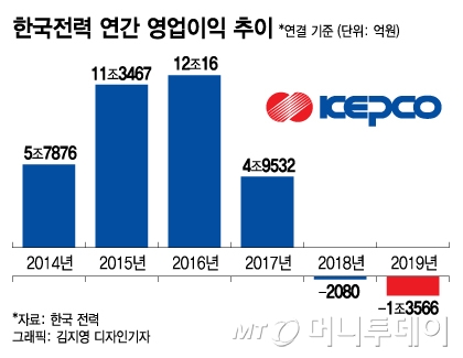 2일 산업통상자원부와 한전에 따르면 지난해 한전은 11년 만에 최대인 1조3566억원 적자를 내면서 지속가능성을 의심받기 시작했다. 구멍난 재무건전성의 가장 큰 원인은 온실가스와 미세먼지 등 국가가 추진하는 정책 비용 부담이 커진 결과로 보인다. 우선 온실가스 배출 관련 비용이 지난해보다 6565억원 늘었다. 2018년 530억원과 비교해 13배가 넘는 규모다.