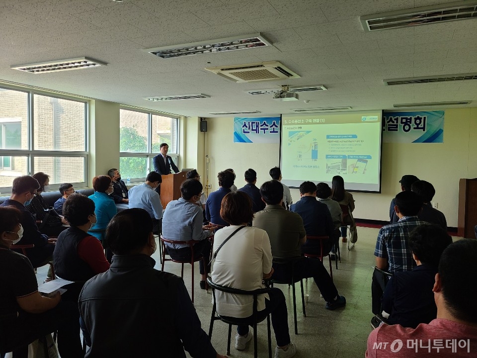 지난 22일 오후 4시 대전 신대동 신대버스공영차고지. 줄지어 선 버스들을 지나 관리동 건물 2층 교육장에 들어서자 정장을 차려 입은 중년 남성부터 뽀글머리의 할머니까지 남녀노소 50명이 자리를 잡고 앉아 있었다. 수소버스충전소가 들어설 이곳 차고지 근처에 사는 주민들이었다.