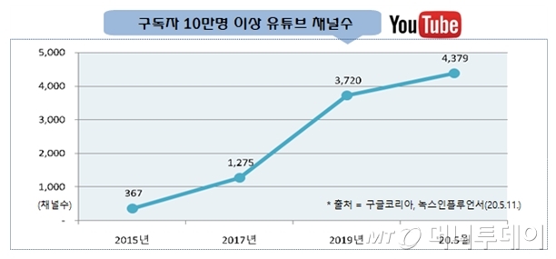 올해 5월 기준 10만명 이상 구독자 유튜버는 국내에만 4379명이다. 구독자를 10만명 넘게 확보해 본인이 올리는 영상마다 이른바 100만뷰가 달성되면 조회수당 약 4원씩, 비용 등을 제외한 크리에이터 수익으로는 2원씩 약 200만원이 분배된다고 한다. 100만뷰 짜리 영상을 한 달에 5개만 만들어도 월 수익이 1000만원에 육박하는 셈이다.