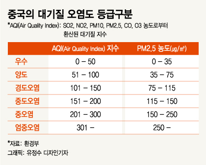 중국은 미세먼지가 심한 국가다. 글로벌 대기오염 조사기관인 에어비주얼이 발표한 '2018 세계 대기질 보고서'에 따르면 중국은 연평균 초미세먼지가 41.2㎍/㎥로 12위에 올랐다. 전체 조사국 중에서 우리나라는 27번째로 오염도가 높았다.