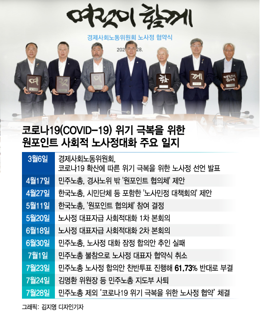 김재하 전국민주노동조합총연맹(민주노총) 비상대책위원회(비대위) 위원장의 발언이다. '코로나19(COVID-19) 위기 극복을 위한 노사정 합의안'의 최종 부결에 따른 내홍으로 출범한 민주노총 비대위가 올 하반기 투쟁에 역량을 집중할 것으로 보인다.