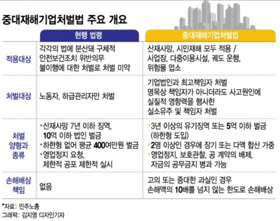 이같이 '끊이지 않는 산재사고'에 노동·시민사회단체가 중대재해기업처벌법 제정에 목소리를 높이고 있다. 반면, 경영계는 과잉형벌의 문제 등을 지적한다.